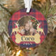 Personalised Red Holly Plaid Reindeer Pet Photo Ornament