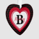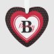 Folk Art design with pretty red hearts sprinkled over a black background, features a large red & white dual colour heart design in the centre, showcasing your your or your loved one's monogram and name. Also great for a pet. On the back you'll find a small heart "tattoo", with the words "Christmas 20xx".