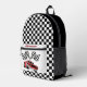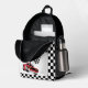 A Childs Racing Car Backpack Designed In Black And White Check You Can Personalise For School