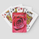 Personalised Red Rose Playing Cards design features a close-up image of a red rose as background to the name you provide in white decorative lettering.