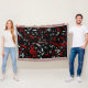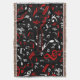 Perfect gift for the music lover or musician with a design featuring a random jumbled pattern of musical notes and treble clefs in red and white on a classical black background. Easy to customise with your own text on a coordinating accent.