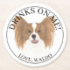 Personalised Red & White Papillon Dog Wedding Round Paper Coaster