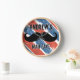 Personalised Red Whte and Blue Moustache Man Cave Wall Clock