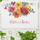 Personalise this beautiful watercolor kitchen towel with your name or any text. The colours in the flowers are purple, pink, red, yellow and orange.