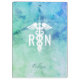 Keep important notes on this Personalised Registered RN Teal Blue Watercolor Clipboard. It has has a modern design with aqua blue and teal ombre watercolor background. A white caduceus symbol and "RN" is on the front centre. Personalised with name in darker teal trendy script lettering across the lower centre. Click personalise template option and enter name.