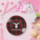 Personalised Reindeer Red and Black Buffalo Plaid Paper Plate