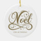 A beautiful gold script "Noel" on a white background. This Christmas ornament serves a reminder of the good news the angel brought to the shepherds that Christ was born. To make it truly special, we offer personalised options where you can customise it with your name and date, making it a cherished keepsake for years to come. Perfect for adorning your tree or gifting to loved ones, this unique ornament combines the joys of Christmas and the spirit of faith in a truly remarkable way.