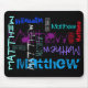 Designed for a first name with 7 letters like Matthew on mousepad. You can easily change background colour and text (colour, font, size and position) by clicking the personalise or customise button. Available for name with 6 letters like Ashley.