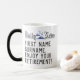 Personalised Retirement Gift Coffee Mug. A gift for someone who is retiring. Retirement gift for a work colleague. Retirement gift mug. Newspaper headline style design. Personalise with the name of the person retiring. Enjoy Your Retirement Message.