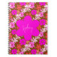 Pink flowers personalised notebook journal. Hand-drawn funky floral pattern in shades of pin on a brown background, has a big pink flower in the centre for a name. Perfect for a teenage daughter to use as a journal or school classwork.