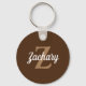 This personalised keychain features a tan monogram and white retro script name on a brown background.