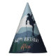Designed to match our On The Edge kids rock climbing birthday party invitations, these fun and adventurous personalised paper hats feature a rock climber on a mountain with a forest below. "Happy Birthday [Name]" appears in rugged lettering.