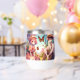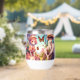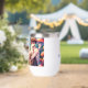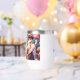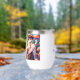 Cute, personalised thermal tumbler for a couple. Add couple's names in the personalise area. Anime boy and girl sitting in a batch of vintage mushrooms and flowers with butterflies flying in the background. Romantic keepsake gift for Valentine's Day or an anniversary or just to say I love you.
