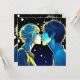 Personalised anime girl and boy romantic moment kissing in front of the stars. Valentine's Day card.