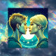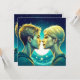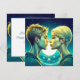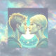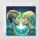 Personalised anime turquoise girl and boy romantic moment standing in front of the stars. Valentine's Day card.