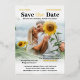 Unique save the date photo card inspired by a classic romcom poster design with title, romcom tagline, your names, quotes from critics, photos, and the details of your wedding. Five out of five gold foil hearts! With gold foil as the accent colour. Romcom movie poster inspired save the date card personalised with your save the date photo for a romcom themed wedding save the date with details printed with gold foil. Add another photo from your save the date photoshoot on the back of the romcom save the date card.