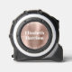 Modern personalised tape measure featuring your name in bold white typography on a brushed rose gold faux metallic background. Add two additional lines of text, such as "property of" or your business title, slogan or contact information.