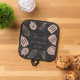 Introducing our Personalised Rose Gold Glitter Cooking Tools Pot Holder. Featuring faux blush pink glitter, kitchen utensils. and customable texts on black background. Suitable for chef, home cook, and cooking enthusiasts.