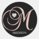 Personalised Rose Gold Heart Monogrammed Letter M Classic Round Sticker