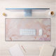 Bring the simple beauty of this rose gold marble surface image into your workspace with this exquisite desk mat. Personalise it with a name printed on the lower right corner. This mat features a view of a serene workbench of a busy creator with a high-quality print from a high definition graphic. It provides a smooth and comfortable surface for your work for your laptop, keyboard and mouse. It will also transform your workbench with a stylish and elegant touch. Perfectly suited for all creators, artists, writers and anyone inspired.