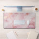 Bring the simple beauty of this rose gold marble surface image into your workspace with this exquisite desk mat. Personalise it with a name printed on the lower right corner. This mat features a view of a serene workbench of a busy creator with a high-quality print from a high definition graphic. It provides a smooth and comfortable surface for your work for your laptop, keyboard and mouse. It will also transform your workbench with a stylish and elegant touch. Perfectly suited for all creators, artists, writers and anyone inspired.