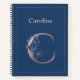 A simulated rose gold design on a deep blue background. Simple, elegant and classic.