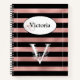 Personalised Rose Gold Stripes with Initial V Notebook