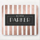 Geometric metallic effect rose gold design, white stripes and black frame with name. Modern trendy chic pink gold pattern.