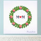 Roses on Laurel wreath on sky blue shades Canvas Print.Text can be personalised! Ideal for Mothers Day! Elegant home decor canvas with bay leaves and pink roses. Roses are for love and bay leaves for wisdom and honour! May love and wisdom prevail in each home!