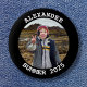 Create your own personalised black border round framed photo button.