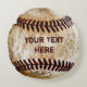 Personalised Super Cool Round Vintage Baseball Throw Pillows with an almost Fossil looking dirty old baseball with close up of the beveled aged baseball stitching. Type your Team or Player's NAME into text box templates. For multiple names, Customise ONE baseball throw pillow at a time, ADD it to CART and then Click your Back Arrow to customise the next round sports pillow.