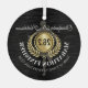Beautiful holiday ornament to commemorate finishing a 26.2 Marathon running race! Mark the occasion with personalised memorobilia. Add your name, race and/or time to this personalised long distance runner keepsake memorobilia. Features elegant gold seal emblem, runner silhouette and stylish black background. Great gift to commemorate completion of a sports marathon for a running fanatic or cross-country jogging sports fan.