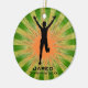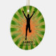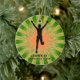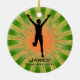 Runner Racer Personalised Ornament Christmas 20XX. An runner poses at the finish line against a green and orange starburst background. All text customisable, front and back!