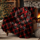 Custom buffalo plaid Christmas blanket with monogram and family name personalisation, a heartwarming gift and festive home decor for the holiday season. This striking red and black diagonal buffalo check design features a bold contrast that enhances the classic rustic charm, making it a standout piece in any room. At the centre, a hand-drawn doodle-style white winter wreath with berries, delicate leaves and a red bow frames a customisable initial for a personalised focal point. The family name and year established are displayed in elegant white typography, adding a timeless and meaningful touch to the design. Perfect for cosying up by the fire, accenting a holiday-themed space, or giving as a thoughtful Christmas gift, this blanket blends traditional holiday elements with personalised flair. Its farmhouse-inspired style is ideal for families who appreciate warm, custom decor that celebrates the season and creates lasting memories.