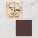 Personalise these unique wedding Save the Date square mini cards. It features a printed wood grain cut tree rings, perfect for your rustic wedding.