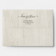 Envelope with a wonderfully rustic light wood background and beautiful calligraphy for your return address.