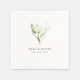 Soft sage green watercolor florals paired with refined typography create an elegant custom wedding napkin, designed to elevate table styling at modern garden, botanical, and timeless weddings.