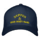 Personalise this nautical themed sailing captains skipper cap with an anchor motif with your sail or motor boats name, or change the text for another crew member. Click customise to adjust the text size, colour or style of embroidery font to match other colour of the hat. Visit the CUSTOMTHREADS STORE for matching sailor products