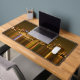 Personalised San Diego Desk Mat: This is a photograph of the San Diego skyline taken at night in October 2020. The skyscrapers' lights reflected in the bay's water, and the light of the full moon that was rising at the time led to these dark and warm colours. Perfect for those who work from home in San Diego, California, or anywhere else. This photo is available on products that make the perfect San Diego souvenir for yourself or as a gift.