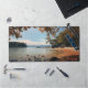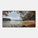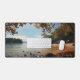 Bring the quiet beauty of this sandy beach into your workspace with this exquisite desk mat. Personalise it with a name printed on the lower right corner. This mat features a view of a beach with rocks and sea shells with trees lining the background and gentle waves rolling in with the sea breeze with a high-quality print from a high definition graphic. It provides a smooth and comfortable surface for your work for your laptop, keyboard and mouse. It can also transform your workbench with a stylish and elegant touch. Perfectly suited for all creators, artists, writers and anyone inspired.