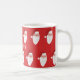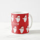 Personalised Santa Christmas Mug with a hand drawn design on a festive red background. Easily add your custom name.