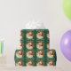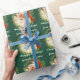 This festive personalised Christmas gift wrap features a wonderful vintage portrait of Santa Claus with his bushy beard. He wears a sprig of holly with a red berry. The portrait is surrounded by a wreath of pine needles on a dark green background. There are two lines for your custom text in pale green; make it say whatever you'd like! It's fun to celebrate Christmas the old fashioned way, and kids will love it!