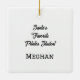 This is a lovely ornament, and great that you personalise the back with details of birthday, weight, etc.. My only tiny disappointment is the "My First" doesn't stand out very well on the background. More than happy with the printing of the photo and the writing on the back.
