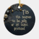 One side reads 'Tis the season to be jolly, or at least pretend,' and the other 'Merry Christmas and Happy New Year.'