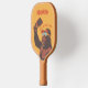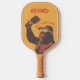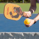 A whimsical illustration of a sasquatch playing pickleball.   Personalise with a name.   The tagline is a pun on bigfoot and foot faults - choose to keep the tagline or replace with your own funny phrase.   Background colour can be changed on both sides.  © Kimbellished, LLC