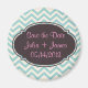 Custom save the date magnets. Vintage antique chevron pattern in blue and pink text perfect for any occasion. See the whole collection on wedding invitations, bridal shower invitations, thank you cards and more.