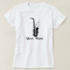 Fun music tee shirt has personalised saxophone music design.