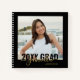 Personalised Black and Gold Notebook for a High School Senior or Graduate to Collect Memories, Signatures, and Advice from Family and Friends at a Graduation Party. Upload your own photo and add their name in the cute and trendy script font and type in the graduating class year for a custom front cover notebook. The border and background colour can be changed to match high school or college team colours.