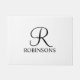 features personalised family name in black classic serif font style and monogram in black classic script font style on white background.