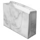 This gift bag features personalised groomsman's name in grey classic script font style with wedding details in grey classic serif font style and monogram in light grey classic serif font style as background, on white marble background.